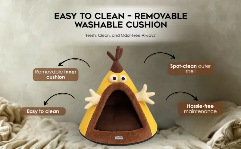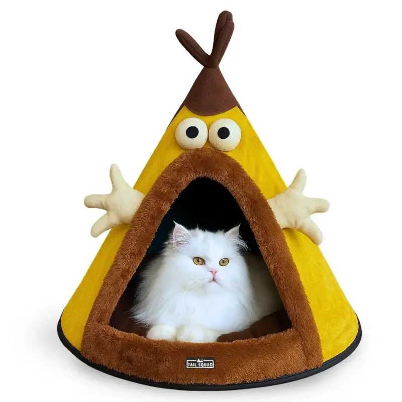 Make your pet feel loved, protected, and perfectly comfortable with the Tail Squad Polyester Washable Cozy Dog and Cat Cave Bed – their new favorite sleeping spot! 🐾