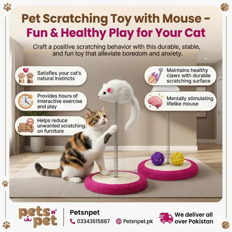 This pet scratching toy with a mouse is the perfect accessory to keep your furry friend entertained while promoting healthy scratching habits. Designed to engage and satisfy your pet’s natural instincts, this toy offers hours of fun and exercise, helping to reduce unwanted scratching on furniture and other household items.