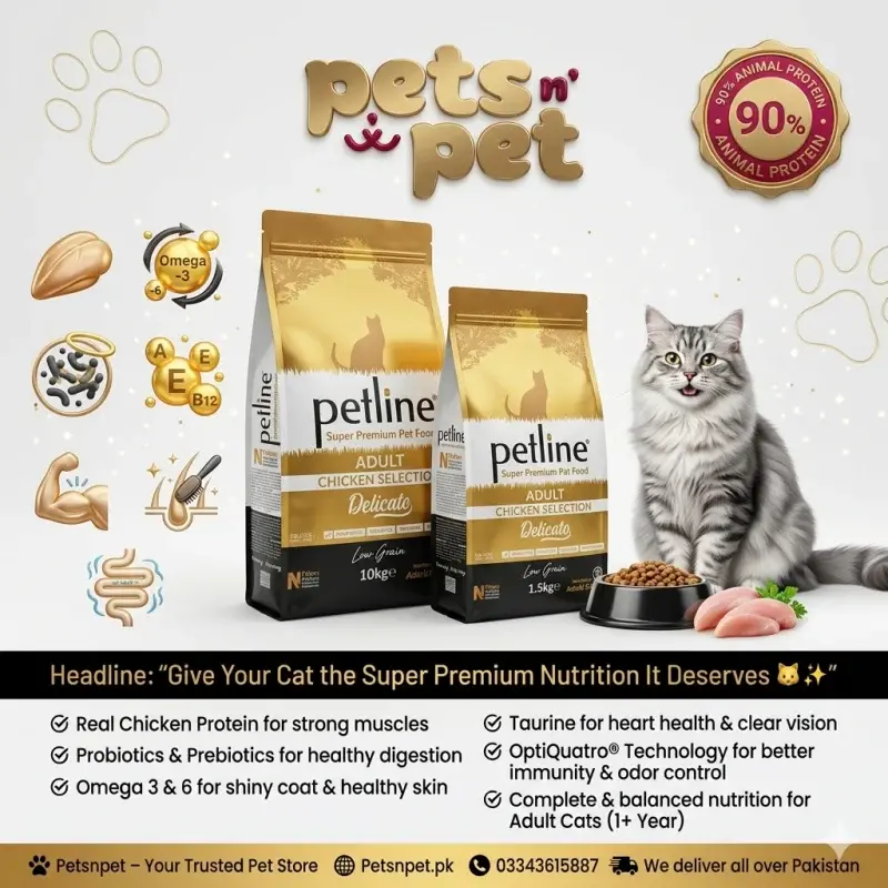 With Petline Super Premium Adult Cat Food, you actively provide your cat with a diet designed for peak health and satisfaction. Every bowl brims with essential nutrients and irresistible flavors, making mealtime the highlight of your cat’s day. By choosing Petline, you ensure your furry friend stays healthy, happy, and full of energy every day.
