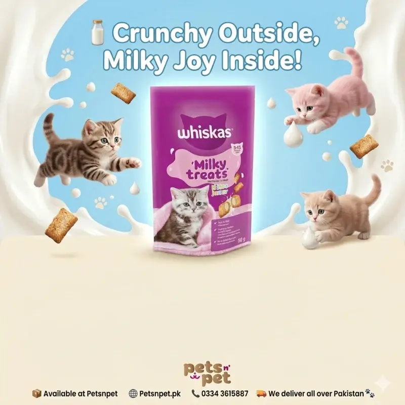 Give your kitten a delicious reward with Whiskas Milky Treats for Kittens 50g, specially crafted to delight young cats while supporting their early growth and development. These creamy and crunchy treats combine irresistible taste with essential nutrition, making them a perfect snack for playful kittens. Whiskas designs these treats to satisfy your kitten’s natural love for milk while providing a balanced and enjoyable treat experience.