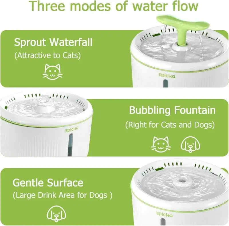 This pet fountain holds up to 2 liters (67 oz) of water, making it ideal for cats, small dogs, and even multi-pet households. You never need to worry about frequent refilling. The constant circulation of water keeps it oxygenated and fresh, helping prevent bacteria growth and supporting your pet’s urinary and kidney health.