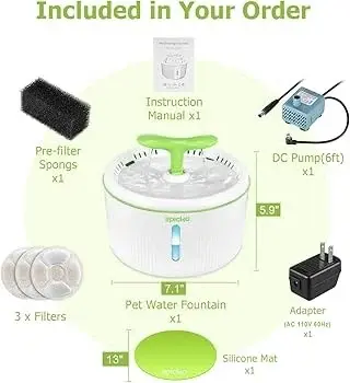 The multi-layer filtration system includes a high-density filter with activated carbon and ion exchange resin. It effectively removes hair, debris, chlorine, and other impurities. Your pets always drink clean and fresh-tasting water.