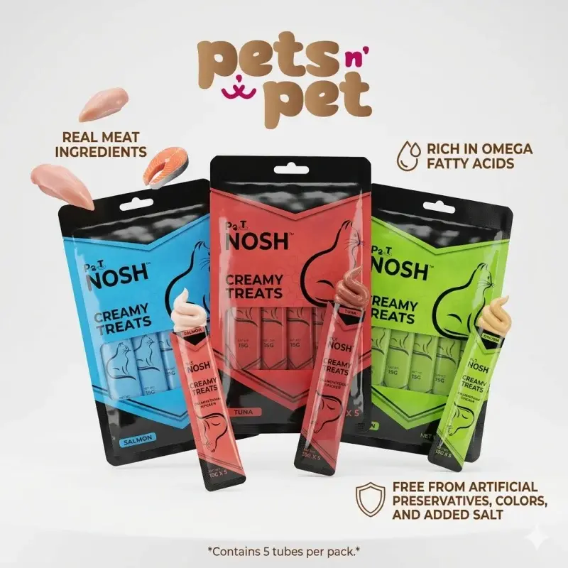 With Pet Nosh Creamy Treats, you can turn every feeding moment into a joyful bonding time. These treats not only satisfy your cat’s cravings but also support their well-being with every lick. Give your cat the flavor-packed goodness they deserve with Pet Nosh Creamy Treats — where health meets happiness in every tube